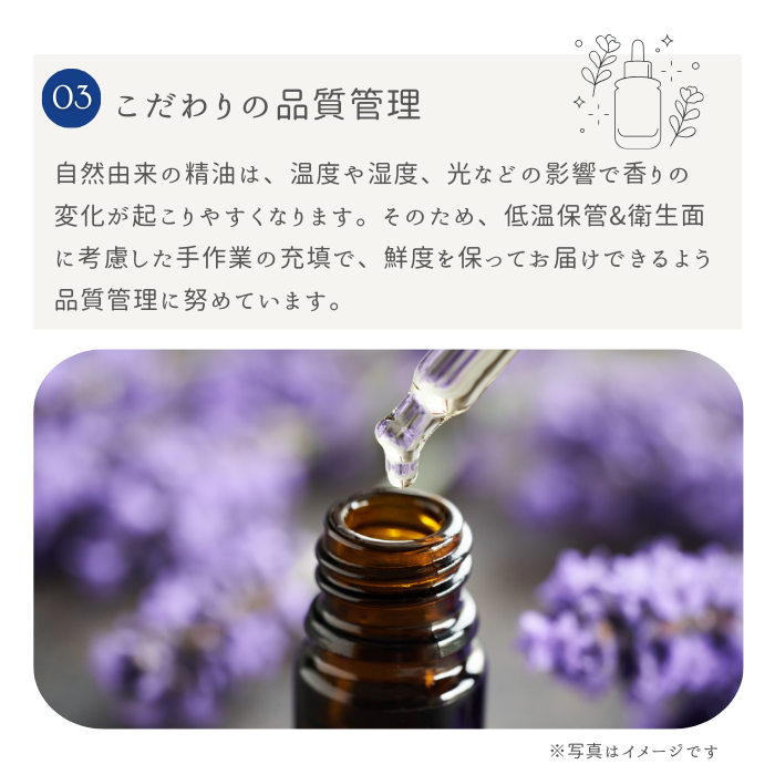・精油の色は、原料植物等の影響により色合いが異なる場合がございます。